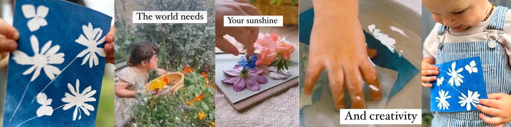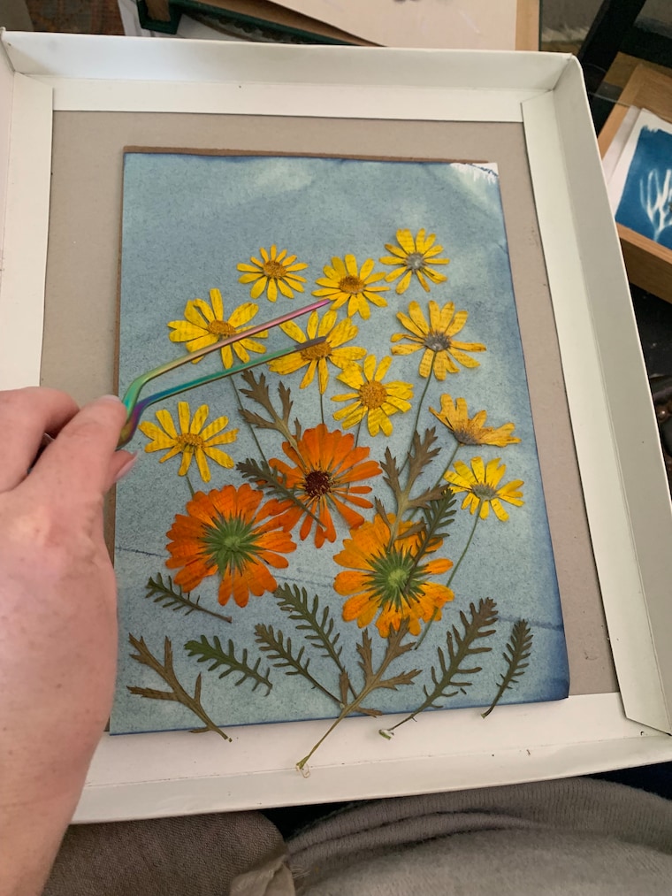 Pressed flowers from sunny days make perfect blueprinting companions. -