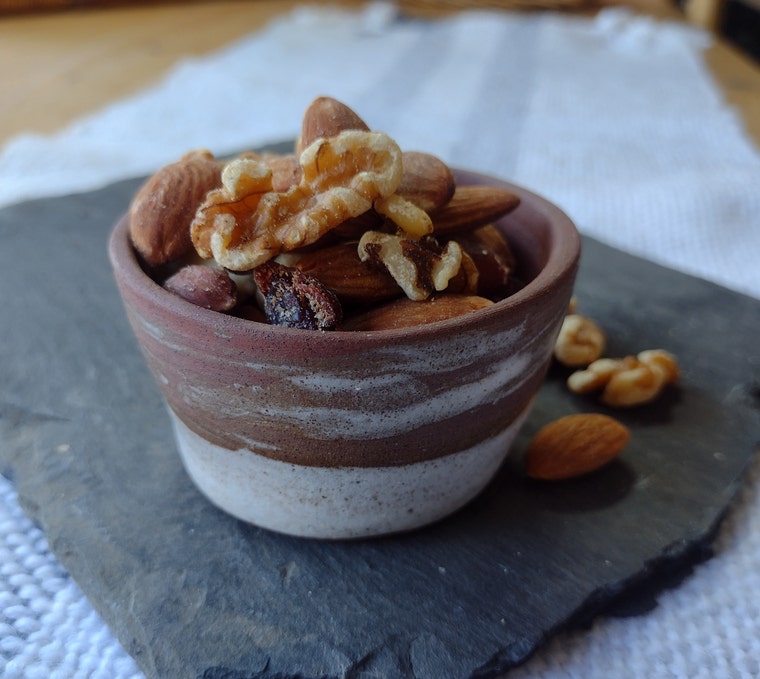Terracotta and dolomite white nut bowl