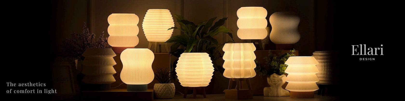 Vi bruger PLA – et biologisk nedbrydeligt biopolymer lavet af fornybare ressourcer såsom majsstivelse. Det er giftfrit, miljøvenligt og holdbart, når det behandles korrekt. Vores lamper printes med matte filamenter i varme, naturlige nuancer, der skaber en blød og tidløs atmosfære i ethvert hjem.