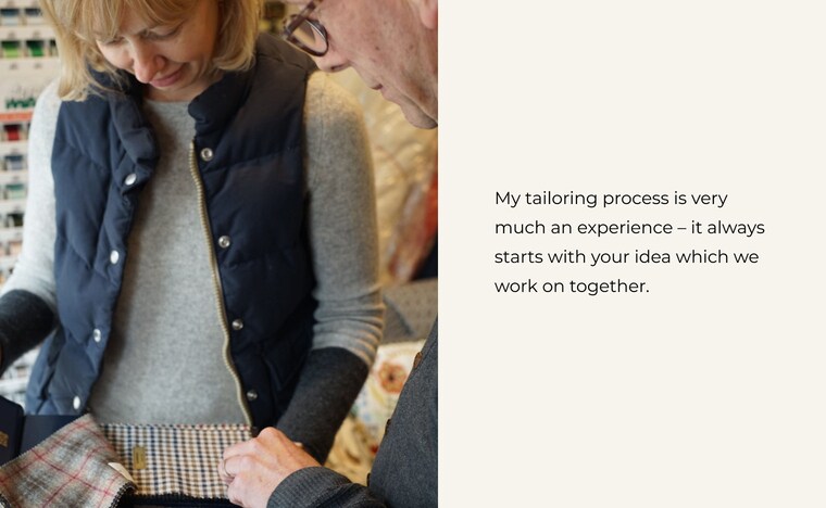 Over the years I have amassed and created a huge selection of designs and patterns. The range of garments I have made for gentlemen, ladies, and children of all ages is as impressive as it is expansive. My attention to detail and pursuit of quality remains just as important now as it has always been, as indeed does my commitment to running a successful and sustainable business.