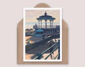 5 out of 5 starsThis card is too beautiful to give away, so I'm going to frame it. The artist is just wonderful. He's captured the special light at Brighton, and the joyous elegance of the Brighton Bandstand, one of the loveliest buildings on the seafront there. It's a dream picture for me, I just love it! To have this image about the house wipes out my bad memory of the ugliness of the two huge modern buildings the Town Council put right centre stage facing the sea, ugliness personified - the conference centre and something else ?a vile car park or something, and also the new ugly high rise buildings they have allowed to ruin the skyline - this in the place where the Pavilion stands, and all those lovely Georgian, Regency and Victorian houses. Brighton beauty, captured in a card! THANK-YOU!