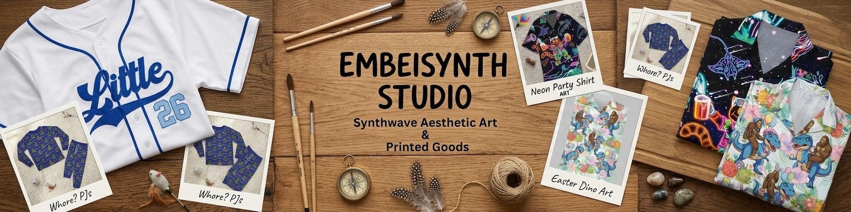 We design and print comfortable clothing and custom goods that seamlessly blend a classic 'Ember' feel with a modern 'Synth' aesthetic.