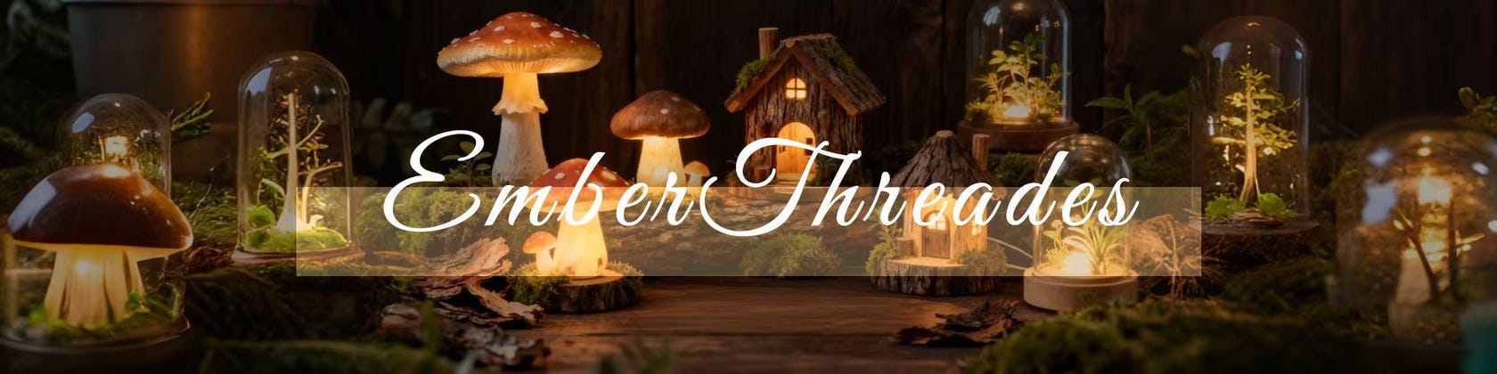 Welcome to EmberThreadES, a forest corner woven from handcrafted creations and imagination. Each mushroom lamp originated from an inspiration struck during a late-night walk—in a forest after the rain, tiny mushrooms quietly peeked out from the damp soil, seemingly bathed in a soft glow under the moonlight. At that moment, I suddenly thought: how wonderful it would be if this warm magic of nature could be brought into everyone's home?