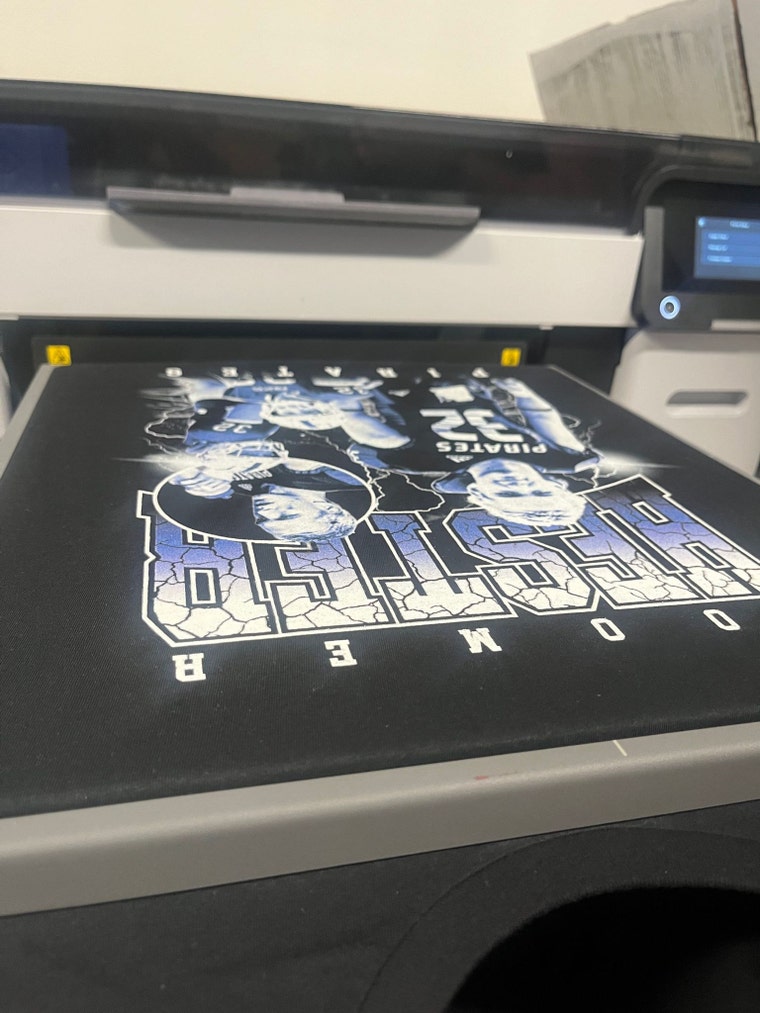 Our most recent addition is our DTG printer which prints directly and in full color onto t-shirts and sweatshirts.
