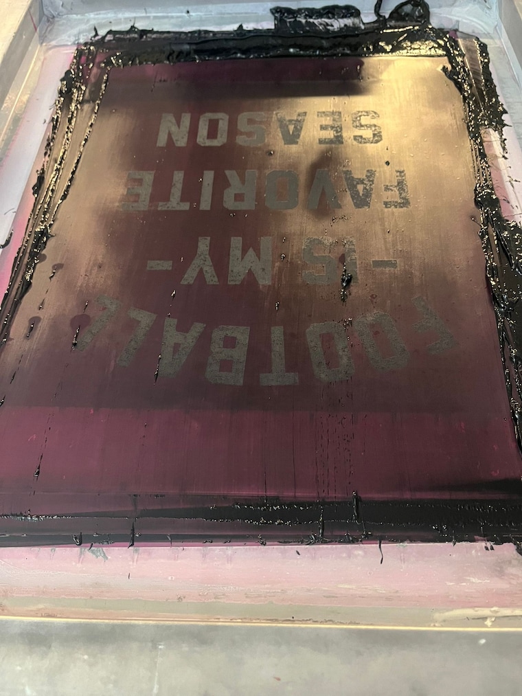 We have a few methods when making our products. Most of our one color graphics are screen printed here in our shop. -