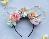 Each pair of floral mouse ears is wrapped in LED fairy lights unless stated otherwise. Battery life is approx. 24 hours.