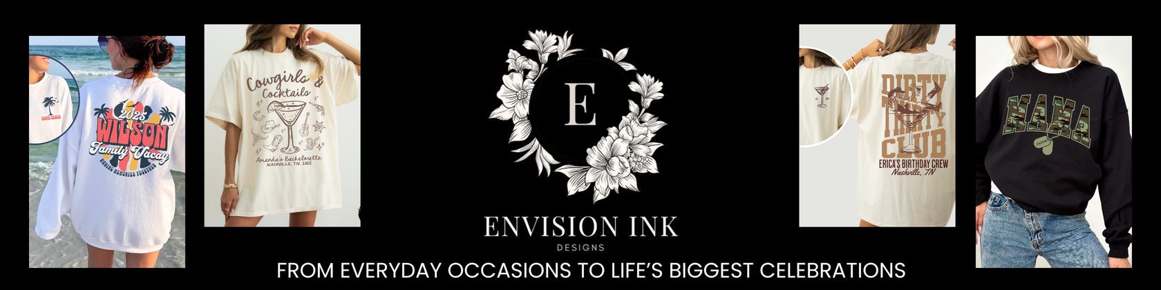 Envision Ink Designs | Custom Banners, Shirts, Sweatshirts & Party Details for Bachelorettes, Birthdays, Family Gatherings & Holiday Celebrations