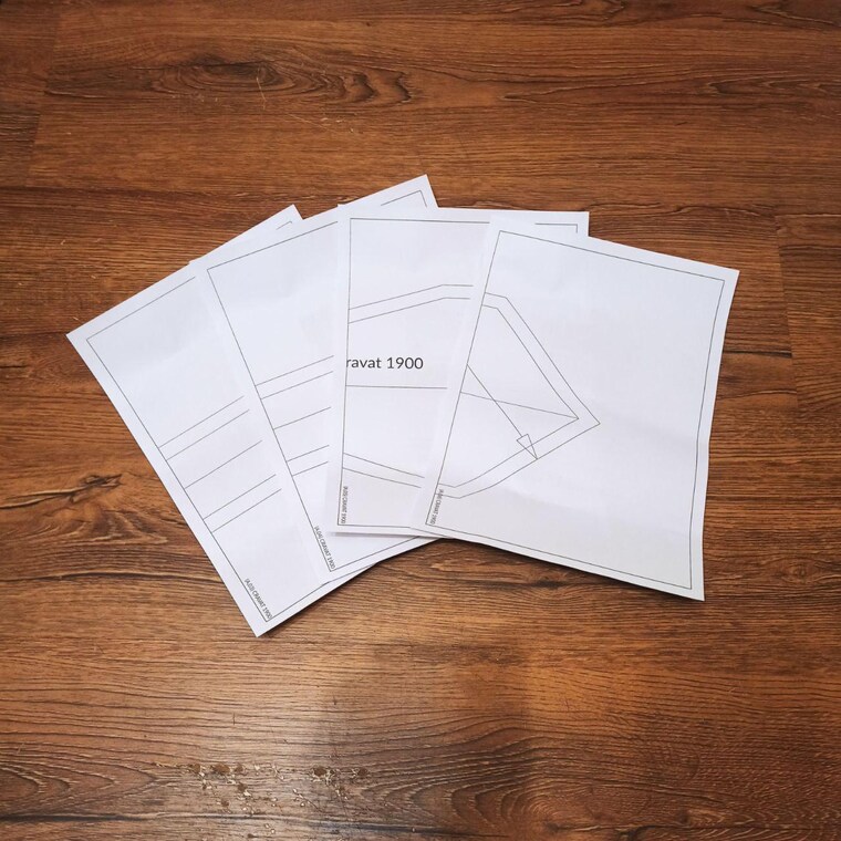 So, I turned my attention to a men's accessory. I researched many museum sources, originals, and vintage magazines. I began trying to make them myself, reworking them in an Edwardian style. I photographed the process. I searched for materials, which were abundantly available in good stores. Of course, many mock-ups were made, and it took a while to find the right pattern shape.