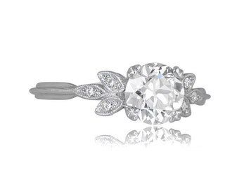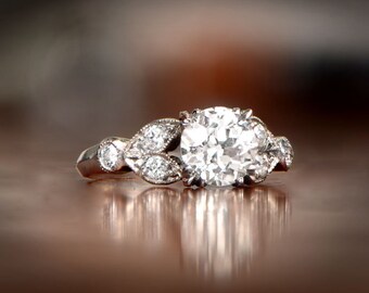 1.16 Carat Old European Cut Diamond Engagement Ring - Leaf Accented with Fine Milgrain