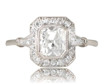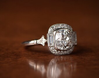 1.72ct Old Mine Diamond Handmade Platinum Mounting - Art Deco Style Engagement Ring