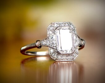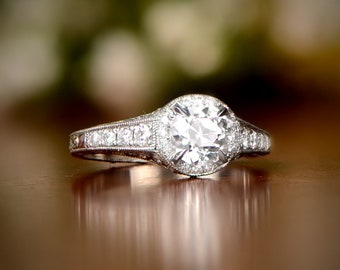 Edwardian Inspired 1.65 Carat Diamond Engagement Ring - Platinum Ring with Engravings