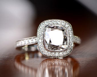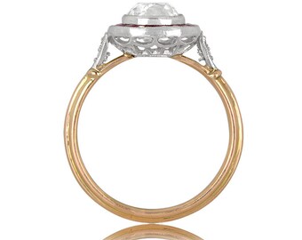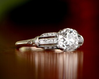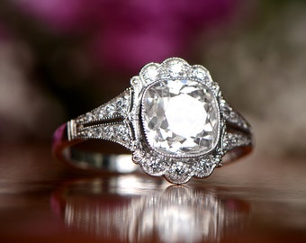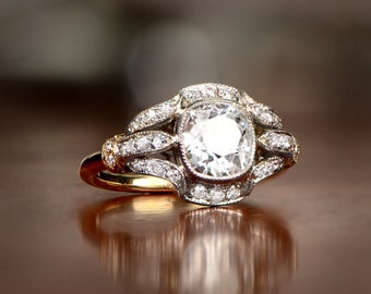 Estate Style 1.54ct Old Mine Cut Diamond Engagement Ring. Platinum and Gold Engagement Ring