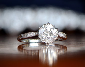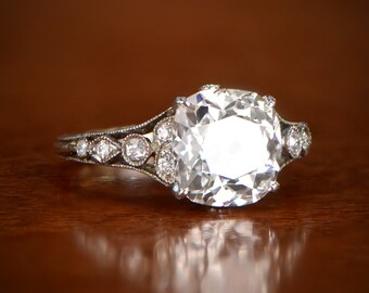 3.80 Carat Edwardian Engagement Ring - Antique Old European Cut Center