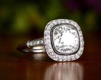 1.93 Carat Antique Cushion Cut Diamond Engagement Ring with Diamond Halo - Circa 1920