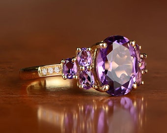 Amethyst 18K yellow gold diamond vintage engagement ring