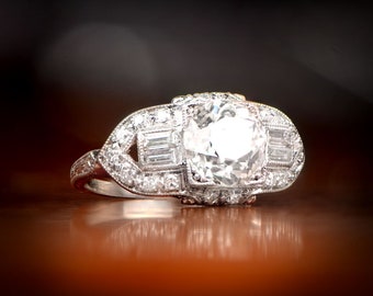 GIA- Rare 2.11 Carat Art Deco Diamond Engagement Ring - D Color - Circa 1930