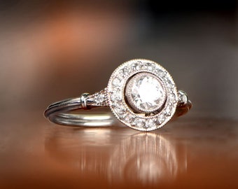 Vintage 0.40ct Old European Cut Diamond Halo Engagement Ring