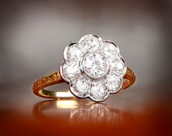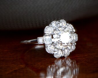 Vintage Cluster Diamond Engagement Ring With 0.45ct Old European Cut Diamond Center