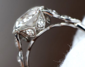 2.90 Carat Cushion Cut Diamond Engagement Ring Decorated with Antique-Cut Diamonds