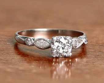 Vintage 0.46 carat Old European Cut Diamond Engagement Ring Circa 1945