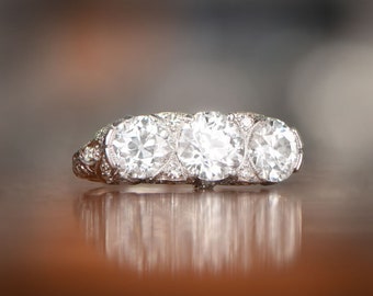 Three Stone Diamond Platinum Edwardian Engagement Ring - 2.55 Total Carat Weight