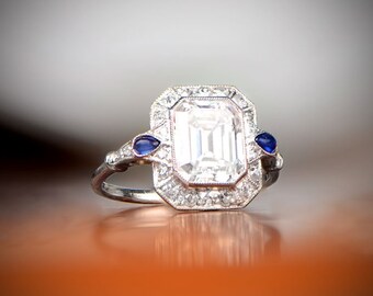 2.60 Carat Emerald-Cut Diamond Engagement Ring Decorated with Pear Sapphires - GIA Certified