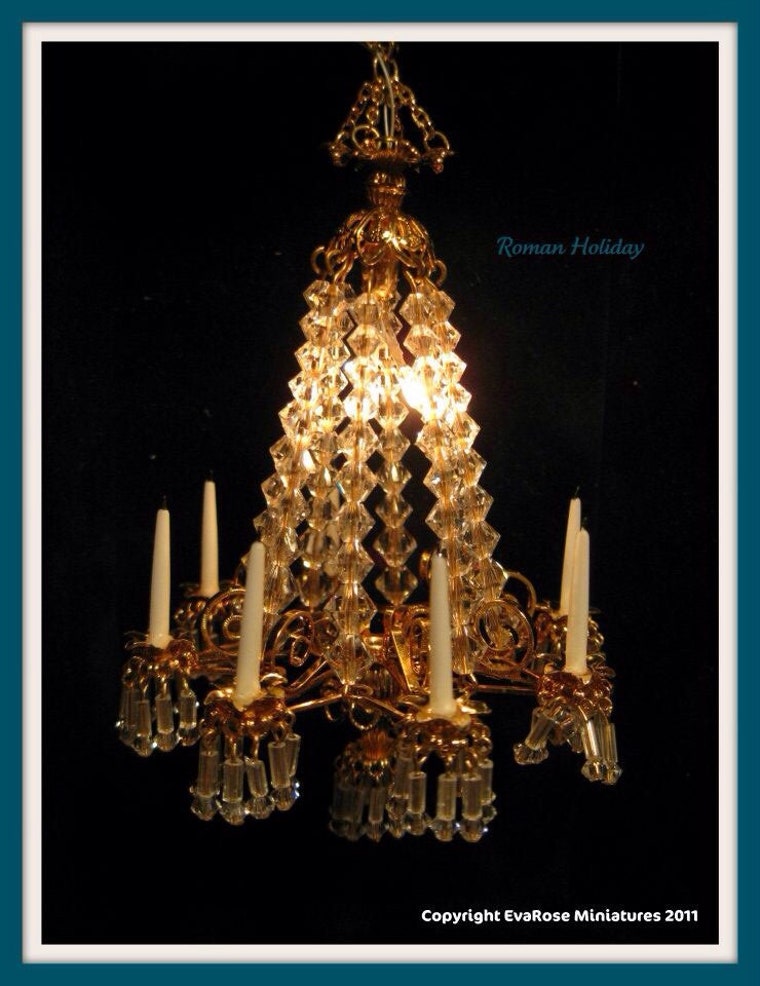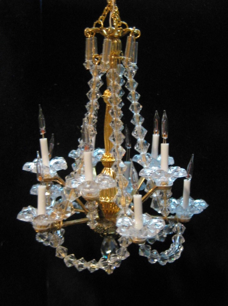 My passion for miniatures began over a decade ago when I had the great fortune to take a chandelier workshop from Phyllis Tucker at a Chicago International Show. Although I had been collecting for over 10 years, Phyllis introduced me to the artistry of making a beautiful Swarovski crystal chandelier. From that moment I was hooked on the beauty that crystal chandeliers exhibit. In my travels I found myself always observing and trying to figure out how to recreate the beautiful lighting I saw. For years I made notes and pieces for friends until I finally decided to make miniature lighting on a permanent basis.