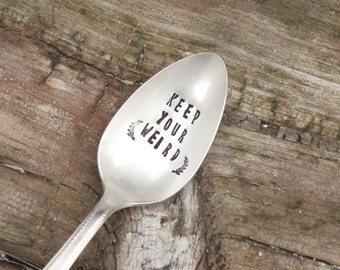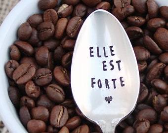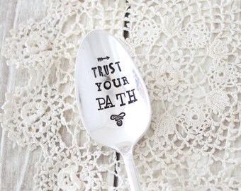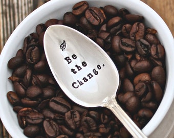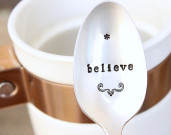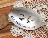 Beautiful vintage serving spoon with happy messaging
