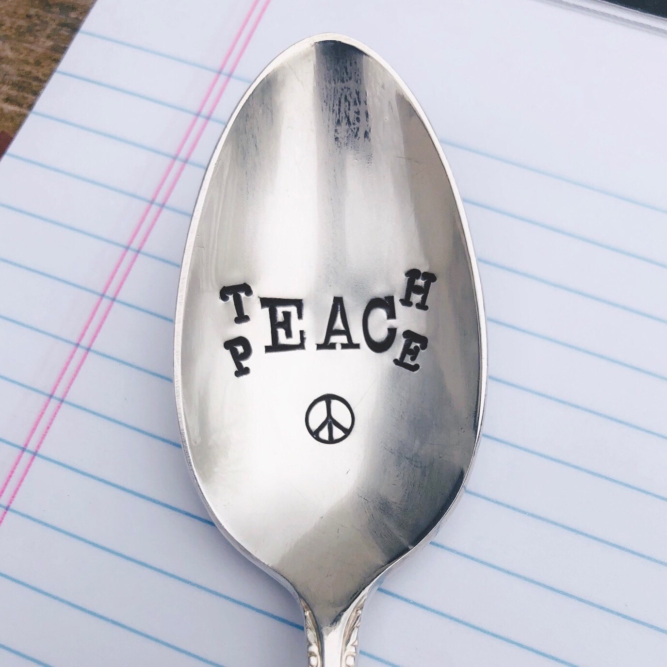 If your item is hand stamped, please know each letter is hammered individually into the silver plate so it may not be perfectly aligned - which is the beauty of the creation! Please HAND WASH your items as this will prolong the look of the lettering.