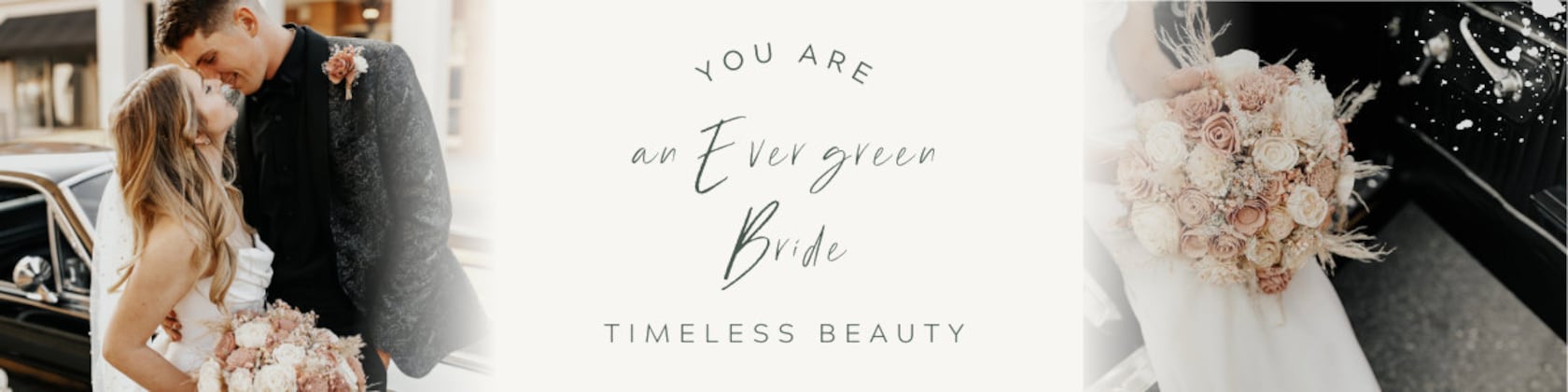In 2013, Evergreen Bride began in the mind of a bride who didn't consider herself a "flowers" type of girl. She felt that fresh flowers were too refined for her audacious personality; too expensive, for such a short-lived bit of beauty; and too perishable, creating last minute and unnecessary wedding stress. She was going to say "I-Do" without flowers at all, until she stumbled upon the incredibly beautiful, yet nonperishable, wooden flowers. She created her own arrangements for her bridal party, and the dream was born.