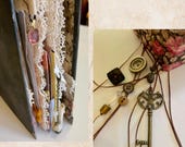 A junk journal is a handmade book filled with a mix of papers, ephemera, and embellishments—both new and vintage. It's perfect for writing, memory keeping, art journaling, or creative play. No two are alike! Pages may include book pages, scrapbook paper, envelopes, tags, fabric, and more. You can write in it, glue things in, or just enjoy flipping through its unique textures and layers. It’s called a “junk” journal, but it’s truly a treasure!