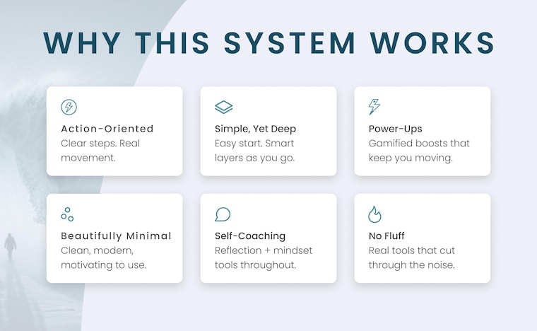 5 out of 5 starsMade with Real heart and soul, you can Feel it. This system meets you at eye level; it feels like someone standing beside you, with you, offering clarity and support. Every part; the writing, structure, questions, and guidance, carries genuine care. The JumpStart guide brings clarity without pressure, the PowerTools dive deep into values, mindset, limiting beliefs and momentum, and the BonusTools touch emotional layers most planners ignore. Warm, human, and created by someone who genuinely wants people to grow.
