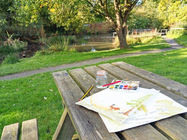 My studio is where ever I want it to be. I take my work out and about with me, I love infusing my art with nature.