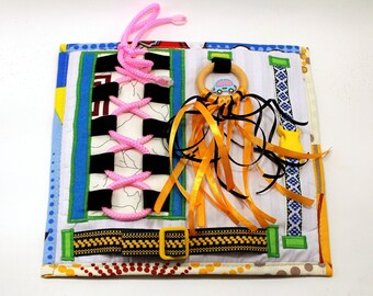 Fidget Activity Page For Toddler, Sensory Lacing Book, Quiet Baby Toy, Quilt Kids Blanket