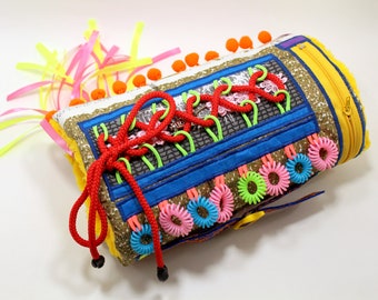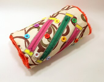 Rainbow Throw Zipper Toy / Dementia Sensory Muff / Alzheimers Twiddle Muff / Button Zipper Fidget Muff