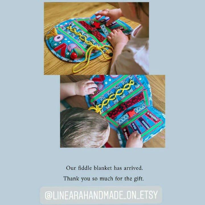 In our shop you can find handmade sensory fidget blankets, activity quiet books and gift tote linen bags. Browse our collection to find something you love or ask us to create a custom item just for you.