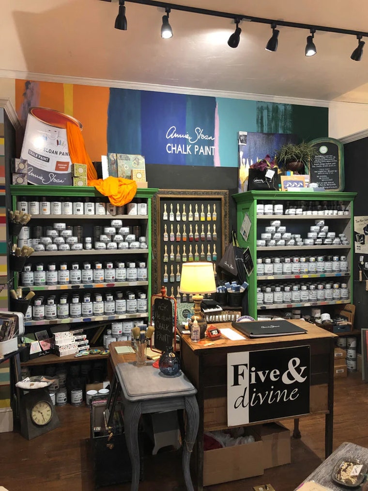 Welcome to Five & Divine, the ultimate destination for all things home decor, jewelry, soap, art, and furniture! Our shelves are packed with unique and playful items that are sure to elevate any space. And when it comes to furniture, we've got you covered with our most popular product, Annie Sloan Chalk Paint. Trust us, this stuff is like magic in a can!