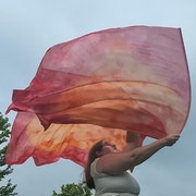I went to a women’s retreat in another town and saw someone dancing with a flag. They were waving it around and I found it absolutely beautiful. She had several other flags laid out for others to use so I grabbed one and when I started dancing I really felt a touch of the Holy Spirit. I envisioned myself in the throne room of God dancing only for him. And it sounds strange but I felt like a little girl with no inhibitions dancing for joy with her daddy.