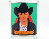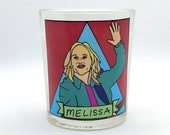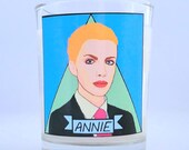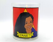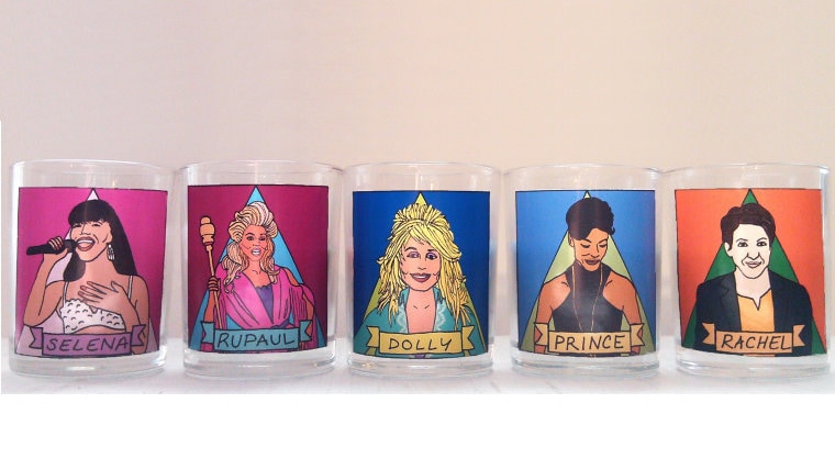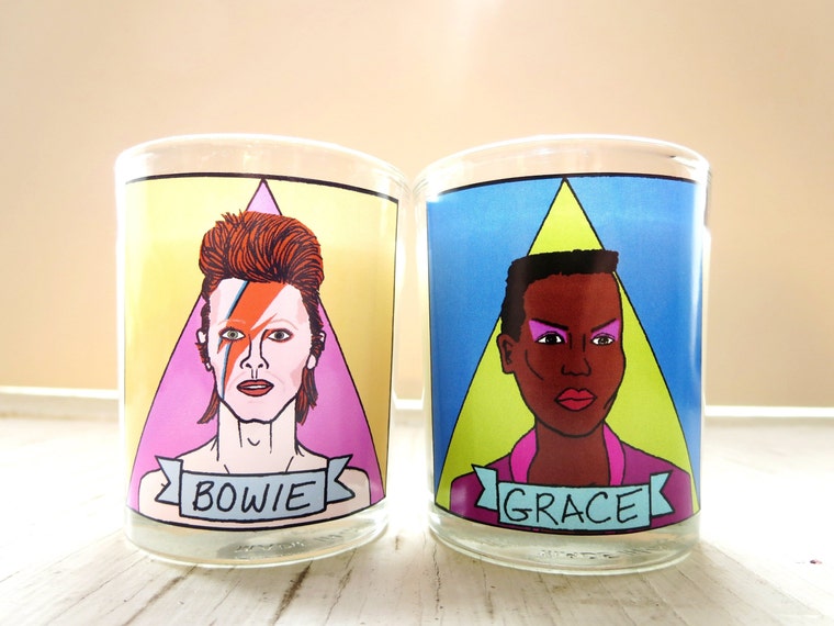 Each candle begins with an inspirational figure. I then use photo references to draw the person. Next I scan the drawing, edit and color it digitally. When it's finished, I print the image on a glossy adhesive paper. I then hand-cut each image and affix it to a hand-poured candle.