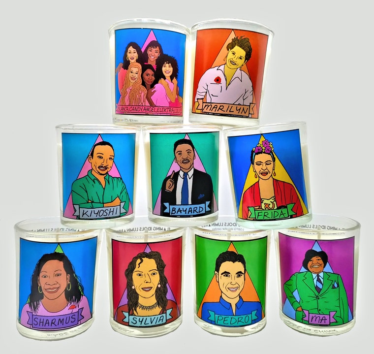 The Luminaries Collection is the part of Flaming Idols that I am most proud of. My passion as an artist is to make art in service of social change and radical social movements. Through the Luminaries Collection, featuring portraits of queer artists and activists who have passed on, I am able to help financially support organizations that continue the legacy of these brave ancestors. The proceeds from the sales of different Luminary candles go to organizations that organize and advocate for queer people.