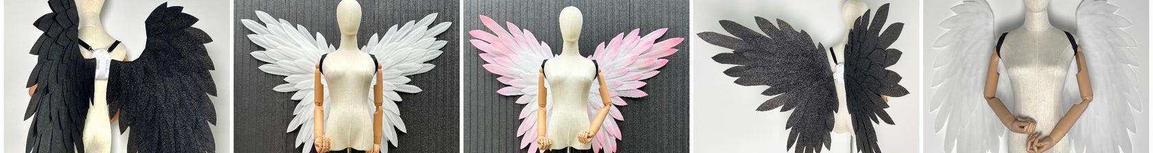 5 out of 5 starsAbsolutely beautiful wings, have to flatten a few of the feathers with some heavy books but besides that, Absolutely perfect for my music video! Large wingspan, easy to put together and adjust, but delicate. You have to be gentle with them.