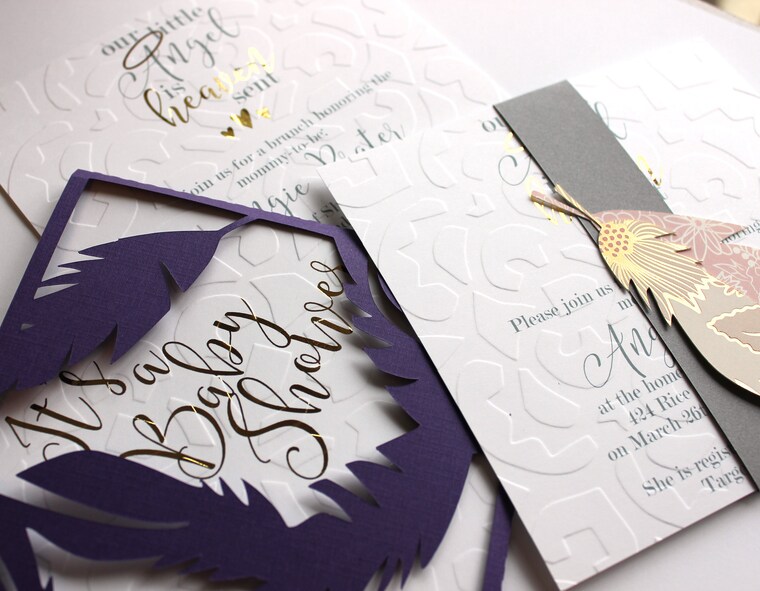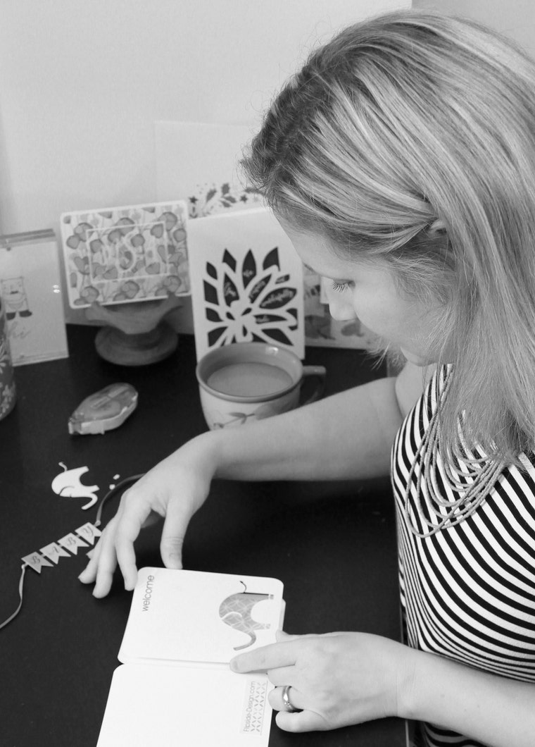 So, with all of my new found "free time," I started getting lots of requests for favors. Those favors started to compound and I eventually found myself creating $5K in retail value worth of baby shower invites, cards and wedding invitations and knew I needed to make this a business. Now, I get to hug and kiss both of my kids all day, help my husband renovate our own 60 year old "Fixer Upper," (which is a whole 'nother story in itself) and make cute, fun and elegant handcrafted cards for you!