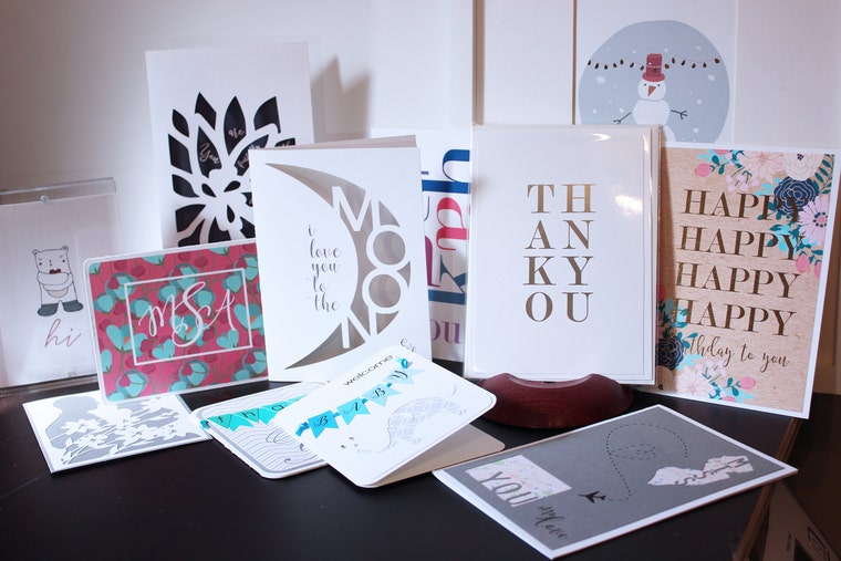 If you can't tell, I'm a little different. I love texture and cut images and incorporate that into my designs. And while I do love a printed image on cotton paper (I mean, who doesn't), I also love working with the negative space to create something unexpected. My goal here is to produce beautiful works of art that can be sent through the mail to brighten someone's day or make a glorious announcement.