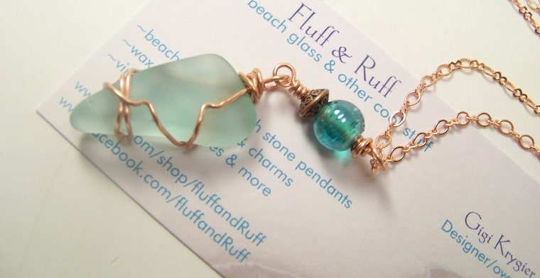 Dopo una manciata di vendite e feedback incoraggianti sulle mie collane, ho deciso di avventurarmi in altri tipi di gioielli. È stato allora che ho recuperato una collezione di vetro da spiaggia a lungo trascurata e ho iniziato a sperimentare con i disegni dei ciondoli "glass stack".