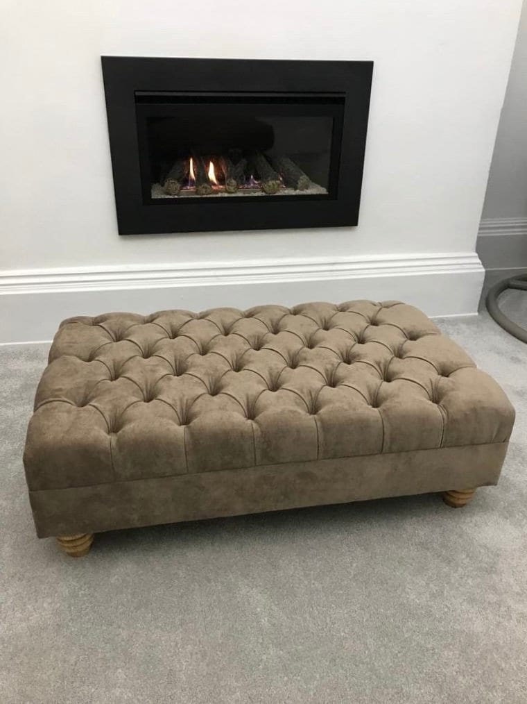5 out of 5 starsExcellent service the ottoman is lovely. The fabric is great ans has a luxurious feel to it. The legs were easy to assemble and very robust. Would highly recommend this seller.