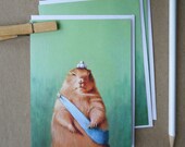 I take my paintings of animals who are willing to sit still for a sec and have cards printed of my favorites.