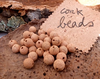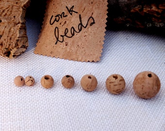 Cork balls for eco jewelry, 50pcs 10mm, natural cork round beads with small hole, natural earrings, keyrings, DIY crafts, kork perlen