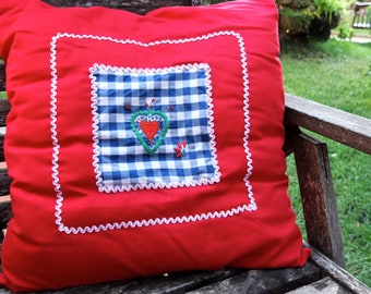 DIY embroidery design pattern, Portuguese hand stamped heart, best friend valentine gift, gingham fabric, embroidery floss, needle, Viana