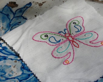 Butterfly Embrodery pattern, DIY arts & crafts for children in a pack with needlework supplies: motif on plain fabric, needle, thread