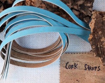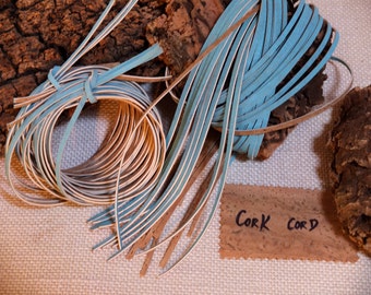 Cork lace blue and natural, 4 x 1m (39 3/8"), 3mm (1/8") wide, Portuguese flat cork cord, genuine cork leather strings, jewelery